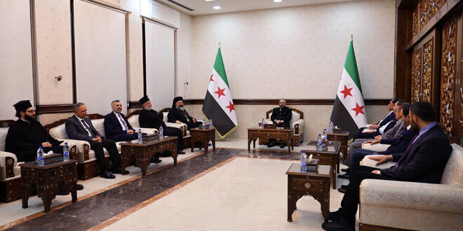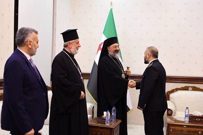 Damasco, 12 may (SANA) El ministro de Defensa, el mayor general Marhaf Abu Qasra, se reunió con una delegación de clérigos y académicos cristianos, encabezada por el Vicario Patriarcal de la Iglesia Greco-ortodoxa, Obispo Romanos Al-Hannat.