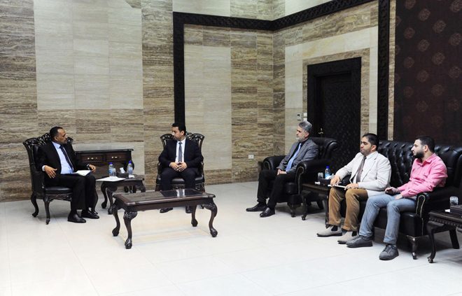 Damasco, 12 may (SANA) El ministro de Salud sirio, Mussab Al-Ali, se reunió con el encargado de Negocios de la Embajada de Sudán, Ahmed Ibrahim Hassan, para estudiar las formas de mejorar y desarrollar las asociaciones entre ambos países, así como la posibilidad de impulsar inversiones conjuntas en el sector farmacéutico.
