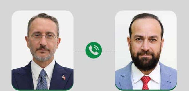Damasco, 17 may (SANA) El Ministro de Información de Siria, Hamza Mustafa, mantuvo hoy una conversación telefónica con Fahrettin Altun, Jefe del Departamento de Comunicaciones de la Presidencia de Türkiye, en la que abordaron diversos aspectos de la cooperación bilateral en materia de información.