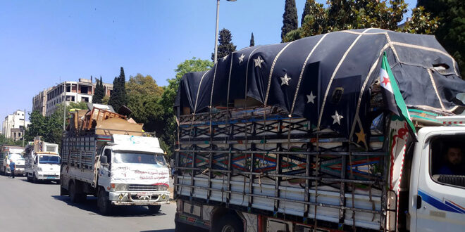 Homs, 21 may (SANA) La ciudad de Homs recibió un convoy de personas desplazadas de los campamentos del norte de Siria, como parte de la quinta campaña bautizada “Retorno Digno”.