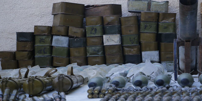 Deir Ezzor, 25 may (SANA) Las fuerzas de seguridad interna de la provincia oriental de Deir Ezzor incautaron un almacén que contenía grandes cantidades de municiones y armas en una casa abandonada de la ciudad de Mohassan.