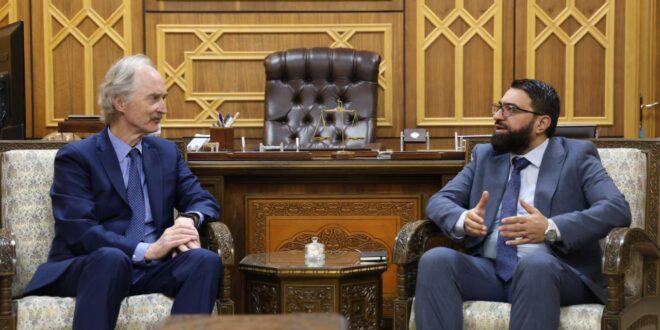 Damasco, 27 may (SANA) El ministro de Justicia, Mazhar Al-Weis, se reunió esta martes con una delegación de las Naciones Unidas encabezada por el Enviado Especial de la ONU a Siria, Geir Pedersen.
