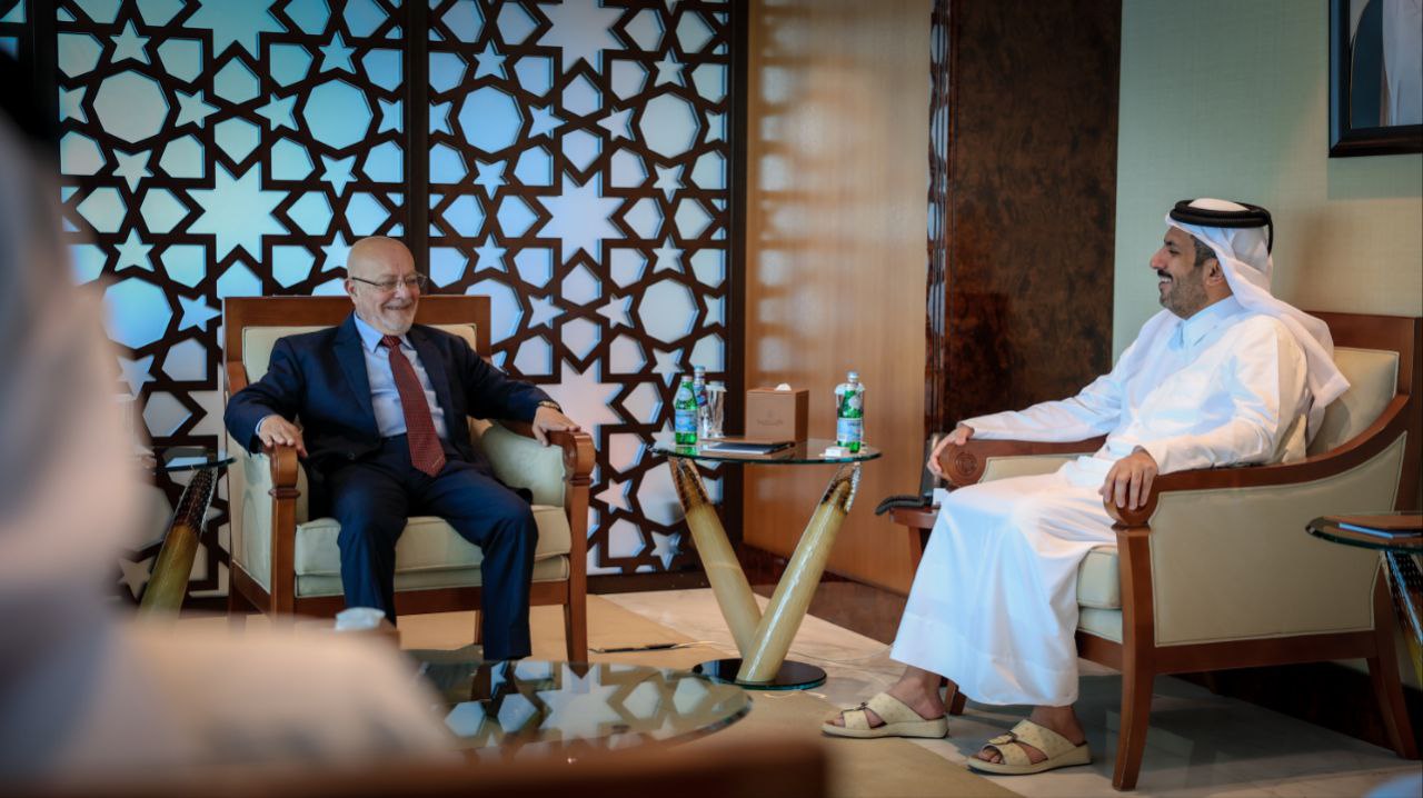 Doha, 3 jun (SANA) El ministro de Economía e Industria, Mohammad Nidal Al-Shaar, y el ministro de Telecomunicaciones y Tecnología de la Información, Abdul Salam Heikal, se reúnen en Doha, capital de Qatar, con el ministro de Comercio e Industria qatarí, Sheikh Faisal bin Thani bin Faisal Al Thani.