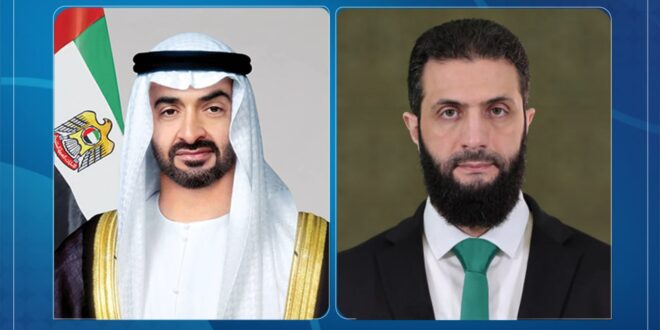 Damasco, 5 jun (SANA) El presidente sirio Ahmed Al-Shara recibió un mensaje de felicitación del presidente de Emiratos Árabes Unidos (EAU), Mohammed bin Zayed Al Nahyan, con motivo del Eid Al-Adha.
