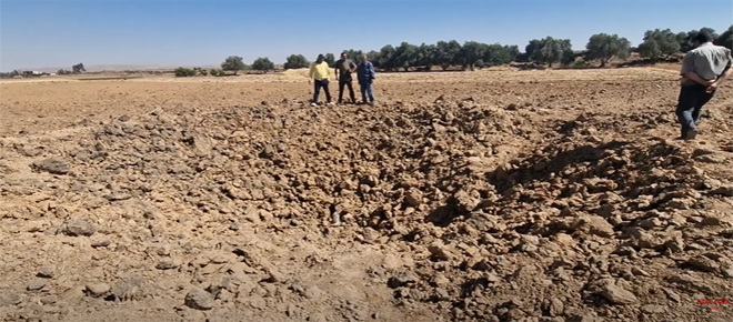 Fuego cruzado entre Irán e Israel deja gran cráter en tierra del sur de Siria