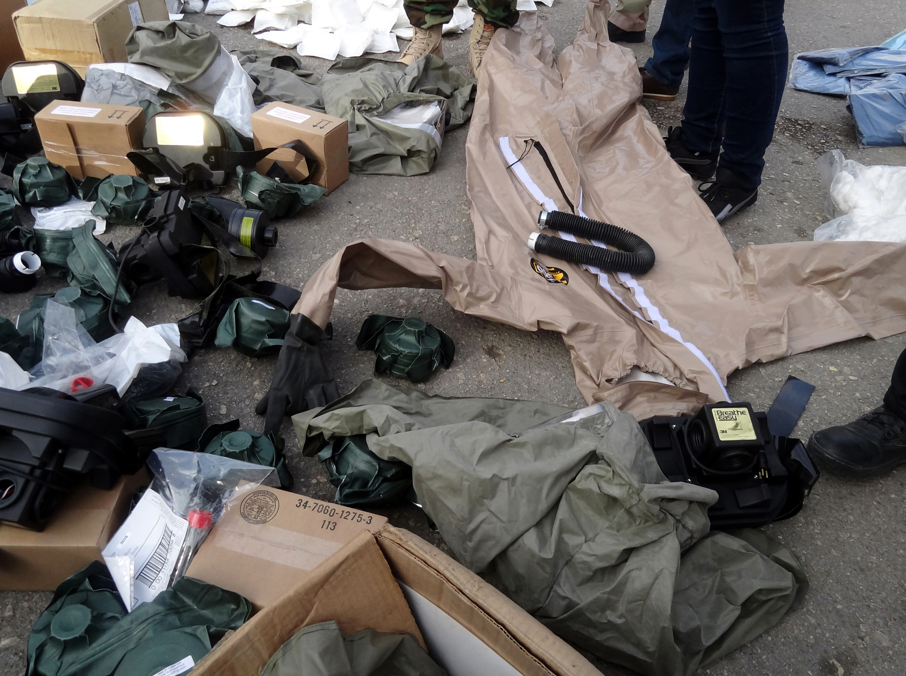 Según el médico, fueron decomisadas grandes cantidades de medicamentos de emergencia y paliativo, algunos muy modernos y otros se utilizan en el Ejército Norteamericano y que no se pueden importar de forma simple, además de equipos especiales para el lanzamiento de ataques químicos y biológicos y un montón máscaras antigás y filtros avanzados.