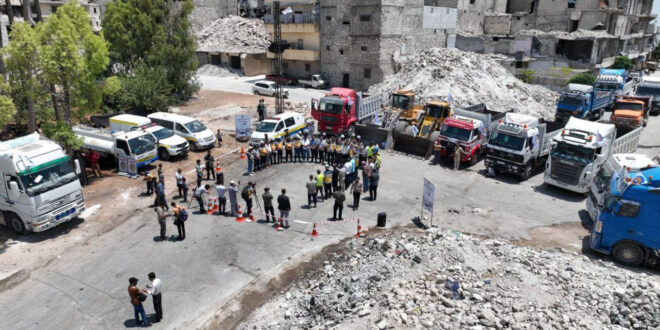 Alepo, 23 jun (SANA) Con financiación del Fondo de Ayuda para Siria, el Programa de Promoción de Resiliencia Comunitaria de la Defensa Civil Siria inició un proyecto de retirada de escombros en 16 barrios adicionales de Alepo.