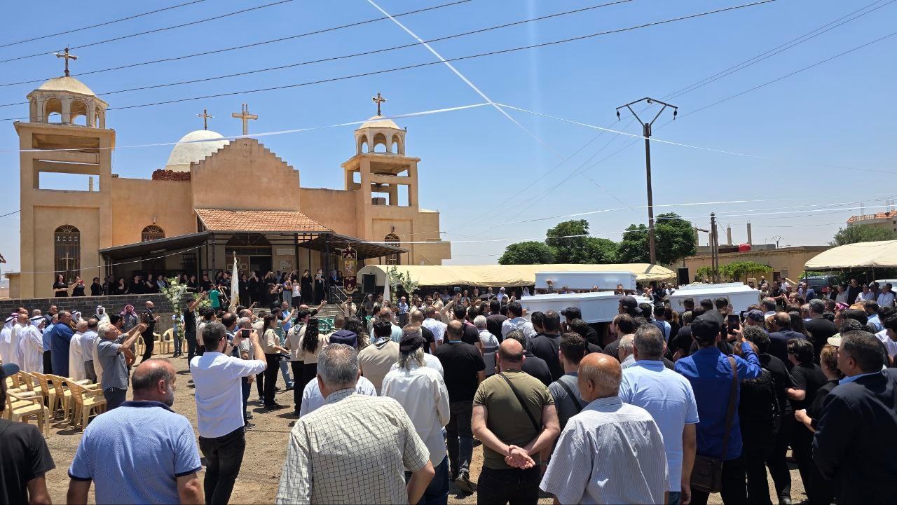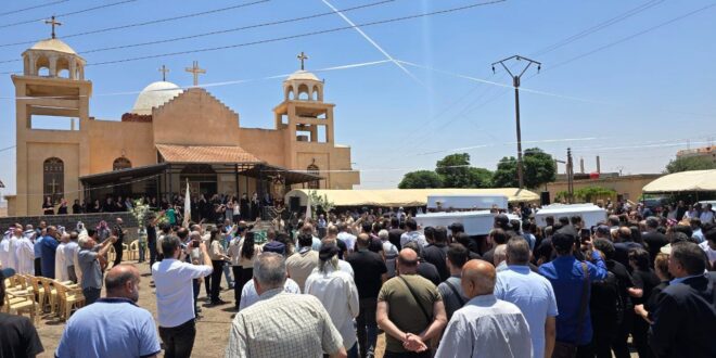 Sweida, 24 jun (SANA) En la localidad de Kharba, en el oeste de la provincia de Sweida, se efectuó una ceremonia fúnebre de algunas de las víctimas del ataque terrorista que tuvo como blanco la Iglesia Mar Elias en Damasco.