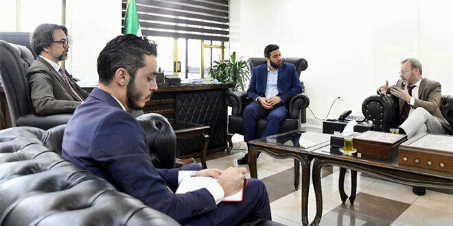 Damasco, 25 jun (SANA) Maher Khalil al-Hassan, Viceministro de Economía e Industria para el Comercio Interior y la Protección del Consumidor, se reunió con una delegación de Mercy Corps para debatir maneras de cooperación económica, en particular en apoyo a las pequeñas y medianas empresas.