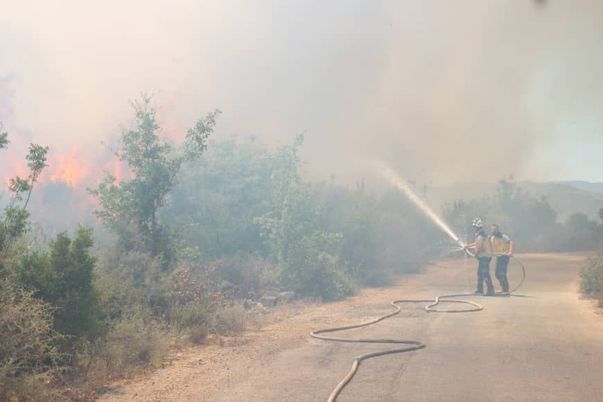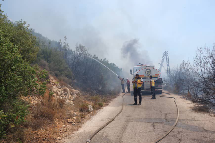 Kayyal destacó que en la zona de Kinsaba el incendio comenzó a afectar áreas con árboles frutales, lo que obligó a emplear maquinaria pesada para abrir paso a los camiones bomberos hasta el corazón del incendio.