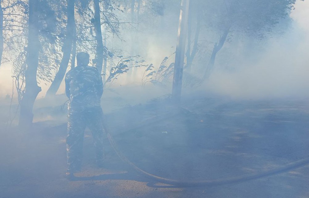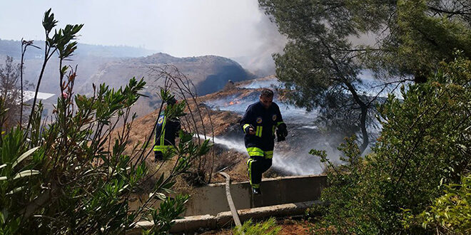 04/07/2025 Damasco, 4 jul (SANA) Un incendio forestal se declaró en una zona entre el barrio de Mashrou Dummar y el Palacio del Pueblo en Damasco. Los bomberos de la Defensa Civil trabajan para extinguir el fuego y evitar su propagación. 2025-07-04 reem