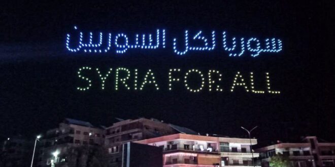 La celebración incluyó un espectáculo visual con drones que representó el águila siria, un mapa de Siria con la bandera nacional, monumentos arqueológicos e históricos de varias gobernaciones.