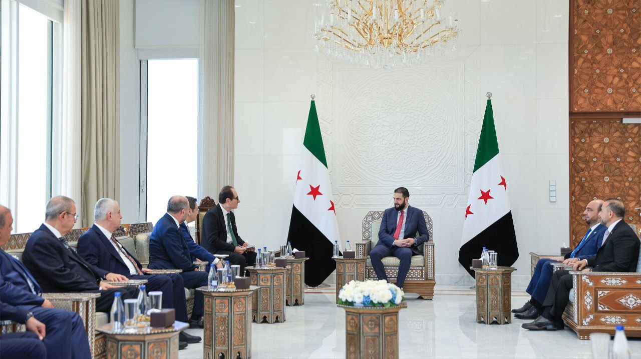 Damasco, 11 jul (SANA) El mandatario sirio, Ahmad Al-Shara, recibió en el Palacio del Pueblo en Damasco a una delegación turca encabezada por Rifat Hisarcıklıoğlu, presidente de la Unión de Cámaras y Bolsas de Productos y presidente de la Federación Mundial de Cámaras (WCF).