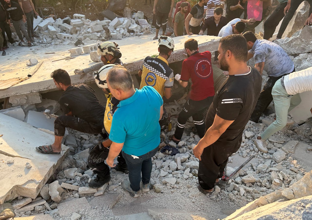 La Defensa Civil Siria declaró que la explosión causó la muerte de una mujer y un niño, y que sus equipos rescataron a una persona y están trabajando para rescatar a otra atrapada bajo los escombros.