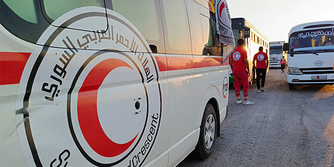 Deraa, 26 jul (SANA) Un convoy de la Media Luna Roja Árabe Siria (MLRS) llegó esta tarde al cruce humanitario de Busra al-Sham, en la zona rural de la provincia de Deraa, con destino a la gobernación de Sweida.