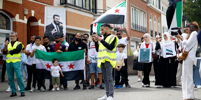 Bruselas, 27 jul (SANA) Miembros de la comunidad siria en Bélgica realizaron una protesta para condenar los recientes ataques israelíes en territorio sirio.