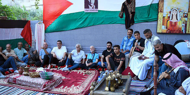 Damasco-campo, 30 jul (SANA) Como parte de la promoción del patrimonio cultural palestino, el Foro Cultural Mahmoud Darwish, con el apoyo de la Embajada del Estado de Palestina en Siria, organizó una velada artística titulada “Diálogo Folclórico” en el campamento de Jaramana, al este de Damasco.