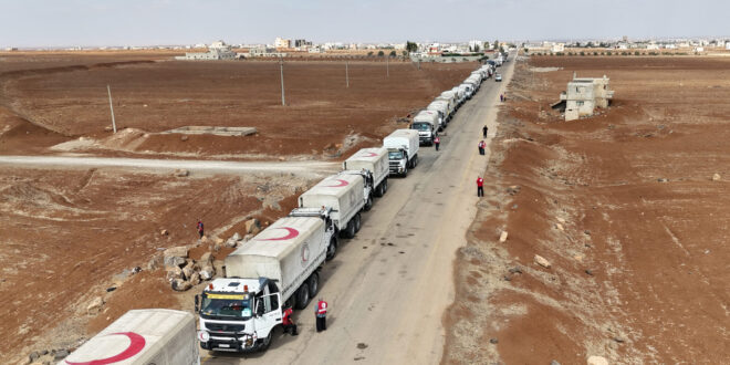 El convoy ha sido organizada por la Media Luna Roja Árabe Siria, con la facilitación del gobierno sirio y bajo la supervisión de las Naciones Unidas.