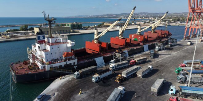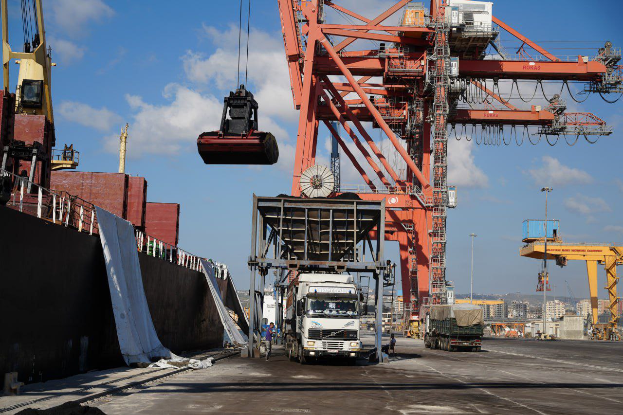 05/08/2025 Tartus, 5 ago (SANA) Un barco con 47.300 toneladas de carbón llegó al puerto sirio de Tartus. Se trata del segundo barco que arriba al puerto en quince años. 2025-08-05 abeer