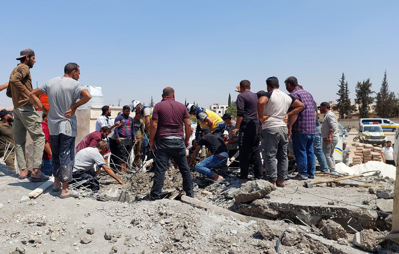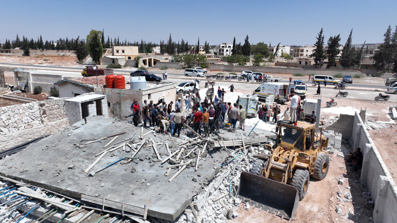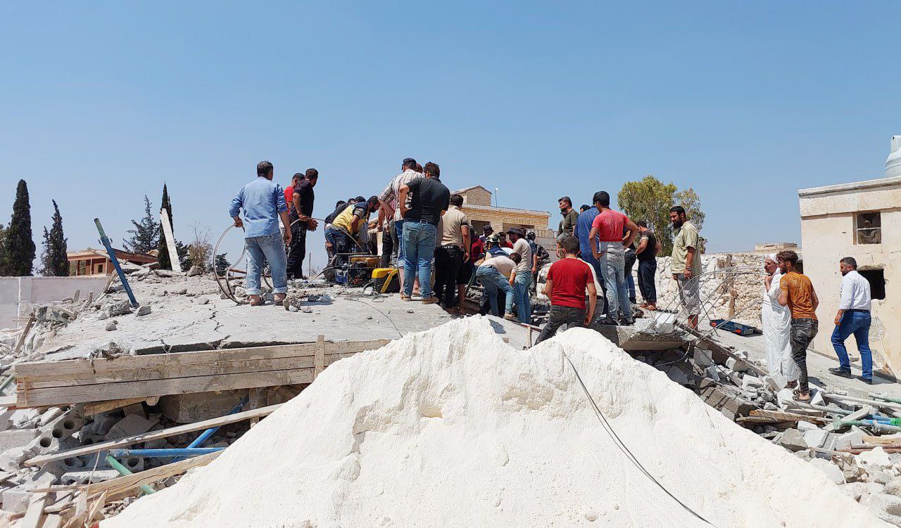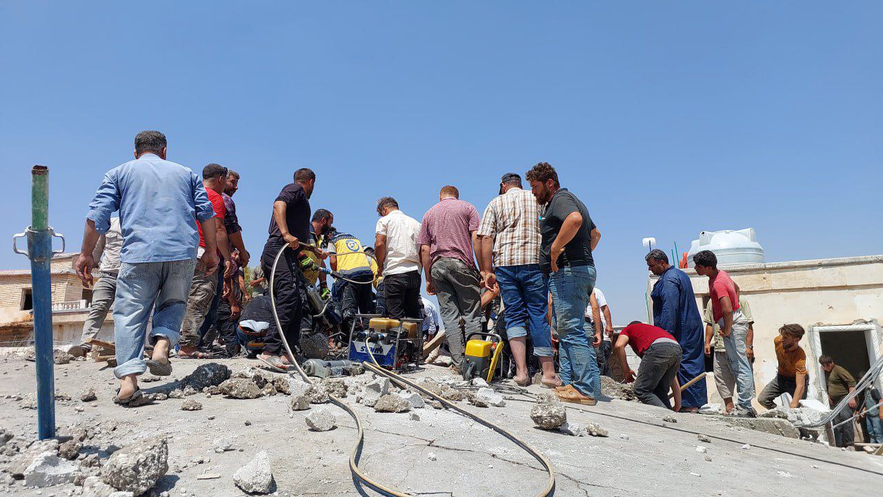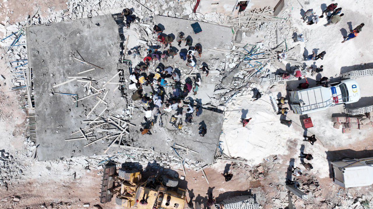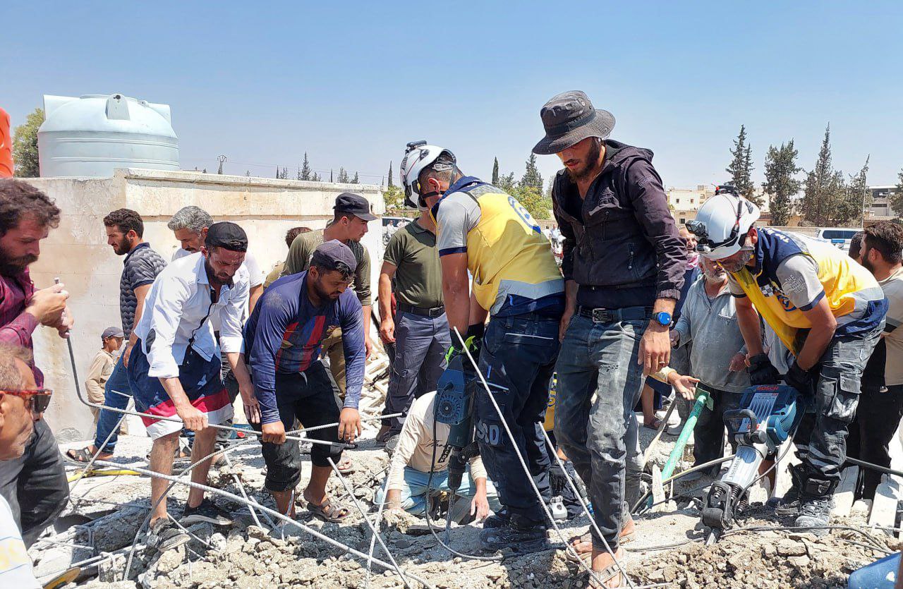 Equipos de la Defensa Civil Siria se encuentran en el lugar realizando labores de búsqueda y rescate, en un esfuerzo por localizar y liberar a las personas que continúan atrapadas bajo los escombros.