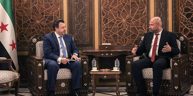 Damasco, 11 ago (SANA) El Ministro de Emergencias y Gestión de Desastres de Siria, Raed al-Saleh, se reunió este lunes con el encargado de negocios de la Embajada de Grecia en Siria, Emmanuel Kakavelakis.