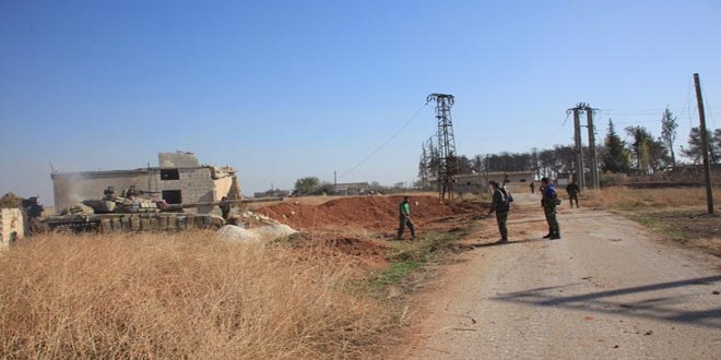 Una fuente militar informó que una unidad del ejército destruyó sitios de los milicianos en el pueblo de Faouri en el campo este de Alepo.