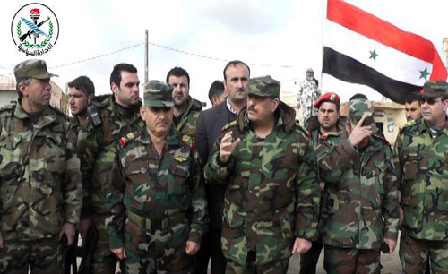 Al reunirse con los uniformados sirios en dicha localidad, el titular de Defensa les transmitió las felicitaciones del presidente al-Assad por sus heroicidades que posibilitaron el restablecimiento de la seguridad en Atman.