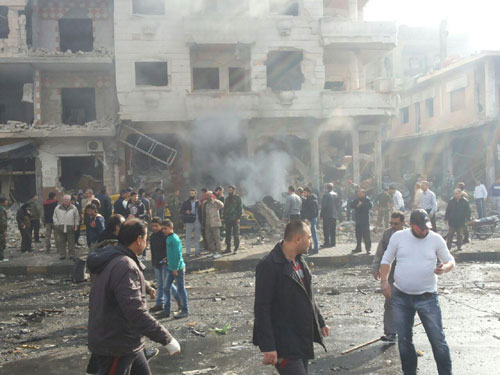 Anteriormente, el Gobernador de Homs informó que terrorista detonaron esta mañana de forma sucesiva dos vehículos cargados de grandes cantidades de explosivos cerca de la entrada del barrio de al-Arman en la calle principal de Homs “al-Sitin”.