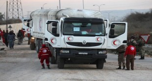 El ministerio publicó en su sitio web un comunicado elaborado por el Centro de Control del Ceso el Fuego en la base área de Hmeimim en Latakia señalando que “convoyes humanitarios rusos en su camino hacia las localidades de Harasta en el suburbio de Damasco y Kafer-Nan en el campo de Homs han sido blanco de disparos de armados desconocidos”.