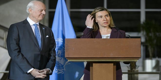 En este sentido, la alta funcionaria europea señaló que había mantenido conversaciones con el secretario de Estado, John Kerry, y se reunió con de Mistura, para discutir las mejores medidas en que Europa pueda apoyar los esfuerzos del enviado del ONU para asegurar el éxito del proceso político en Siria, como se estipula en las reuniones del Grupo Internacional de apoyo a Siria y las resoluciones del Consejo de Seguridad de la ONU.