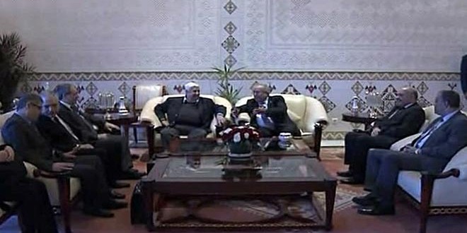 El Viceprimer Ministro y Ministro de Exteriores y Expatriados, Walid al Moualem, examinó con el Ministro de Asuntos Exteriores y Cooperación Internacional, Ramtane Lamamra, las relaciones bilaterales y la postura común de los dos países hermanos respecto al terrorismo y la necesidad de seguir luchando contra este flageo que amenaza la región y el mundo.