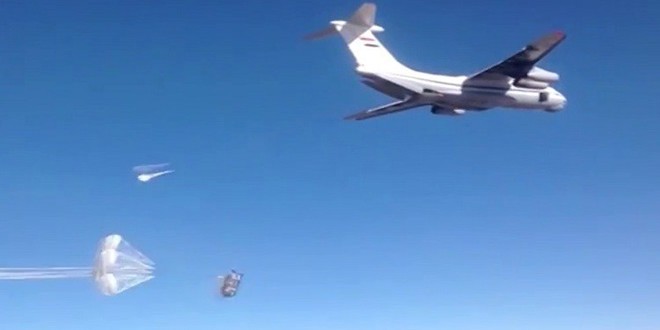 Fuerza Aérea de Rusia en cooperación con el gobierno sirio sigue proporcionando ayuda humanitaria a las personas sitiadas de Deir ez-Zor.