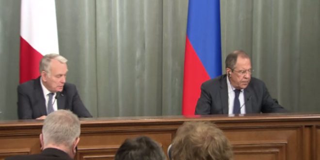 El ministro ruso, durante una conferencia de prensa en Moscú con su homólogo francés, Jean-Marc Ayrault, dijo: “Hemos discutido los esfuerzos en la lucha contra el terrorismo, y hemos acordado continuar con el trabajo del Grupo internacional de apoyo a Siria.”