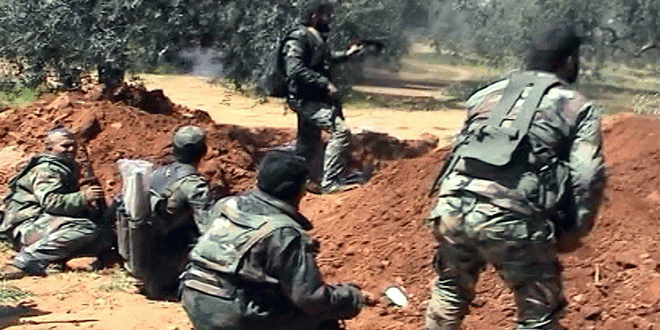 Una unidad del ejército, apoyada por de la Fuerza Aérea de Siria, se enfrentaron con los terroristas del Frente al-Nusra y Jund al-Aqsa en Al-Tamanaa, Skeik y Atshan que trataron de atacar zonas residenciales en la dirección de Maan, situada a 30 km al norte de la ciudad de Hama, según informó una fuente militar el viernes.