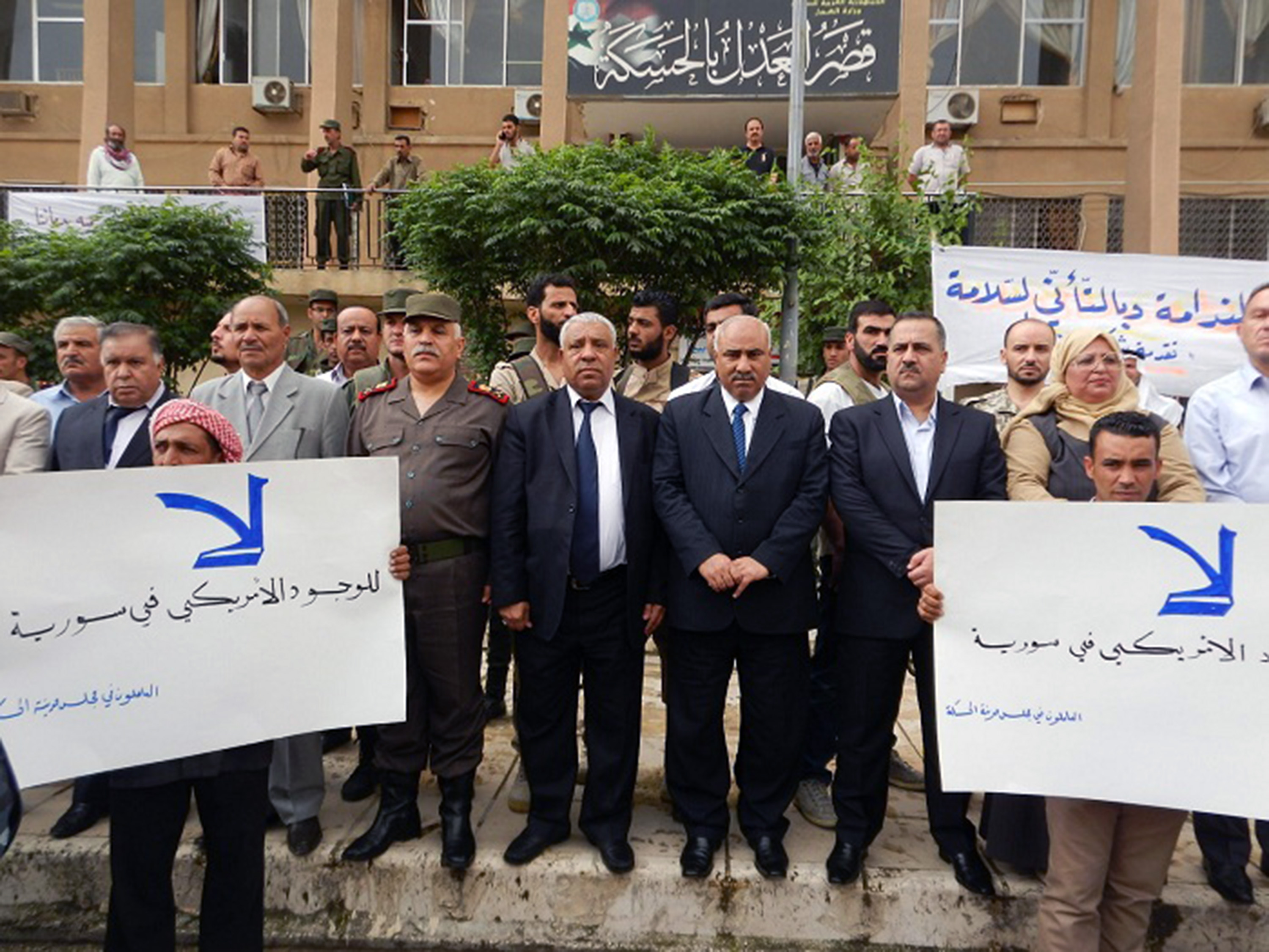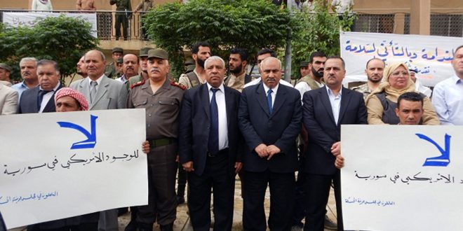Actores sociales y populares se congregaron este miércoles en la ciudad de Hassakeh en protesta por la flagrante agresión del ingreso de 150 soldados estadounidenses en la zona siria de Rmeilan en el campo de Qamshli.
