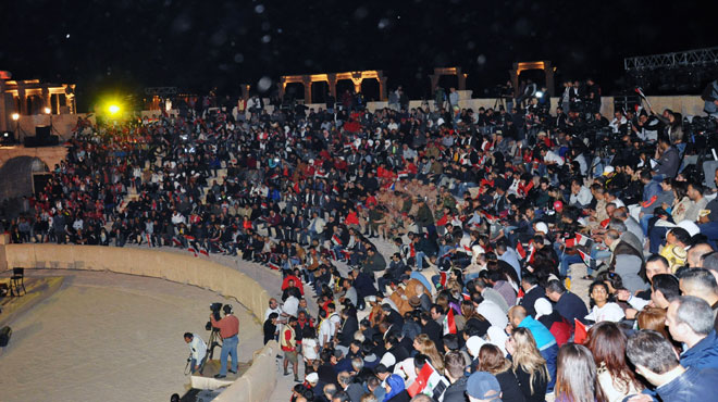 Bajo los auspicios del presidente Bashar al Assad y en memoria de los mártires de la patria, se celebró la noche del viernes un gran evento cultural bajo el lema: “Palmira, la Puerta del Sol”.