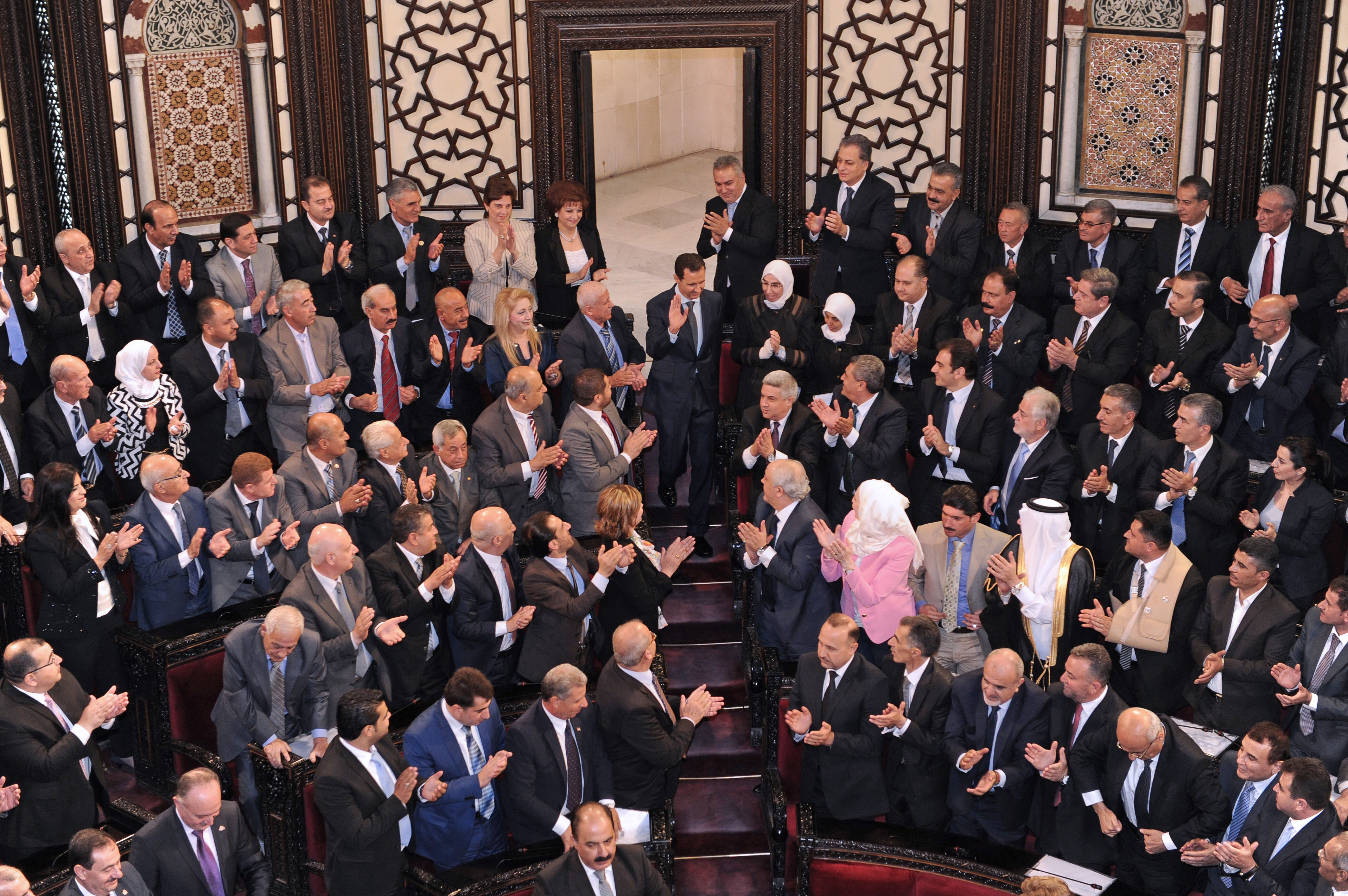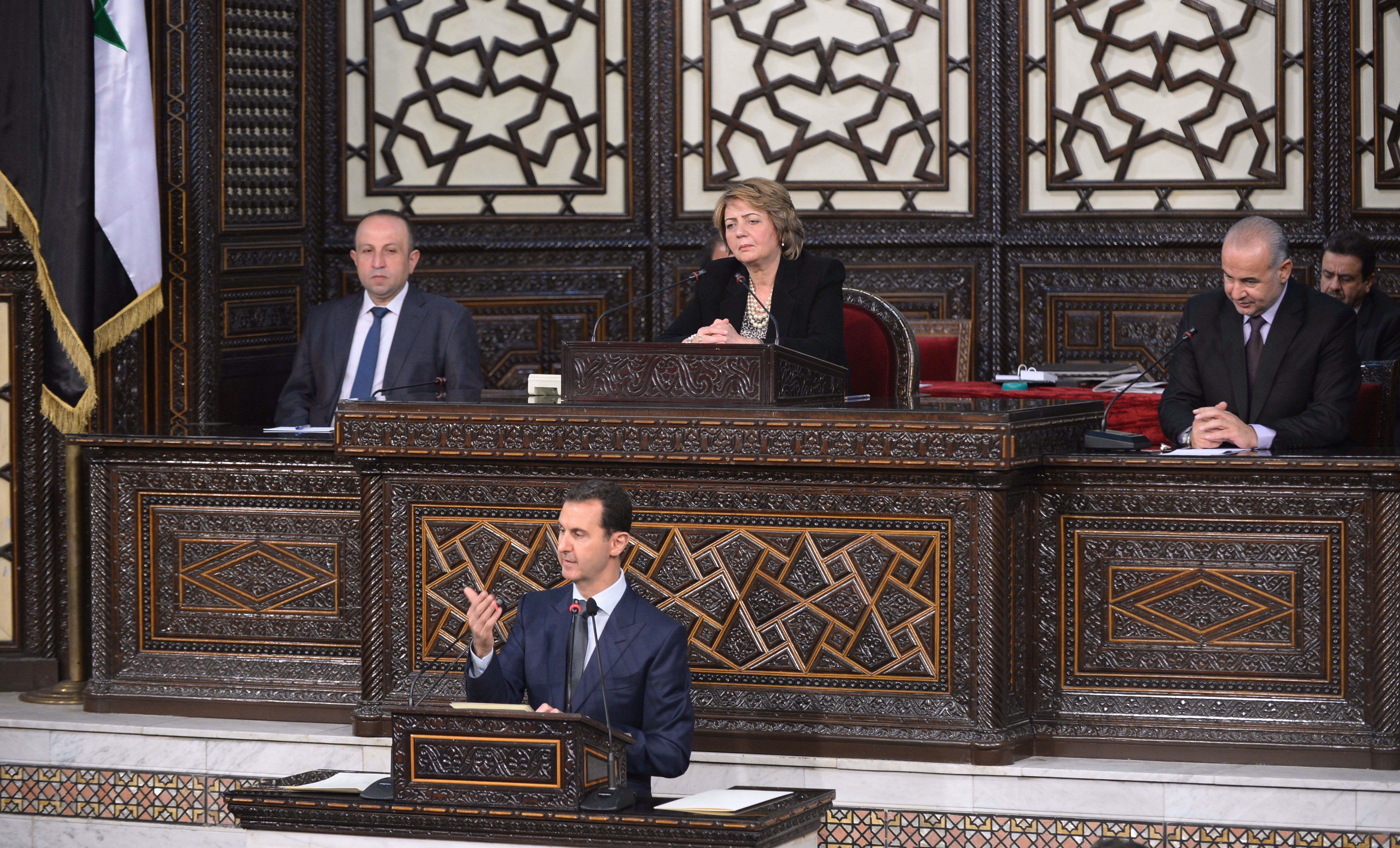 El presidente de la República, Bashar al Assad, pronunció un discurso ante la nueva Asamblea del Pueblo que celebró su segunda sesión de su primer periodo legislativo.