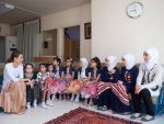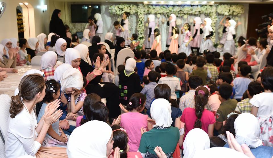 A término de su visita, la Señora al-Assad asistió una actividad artística de las niñas del orfelinato, en la cual cantaron cantos sobre el sagrado mes de Ramadan.
