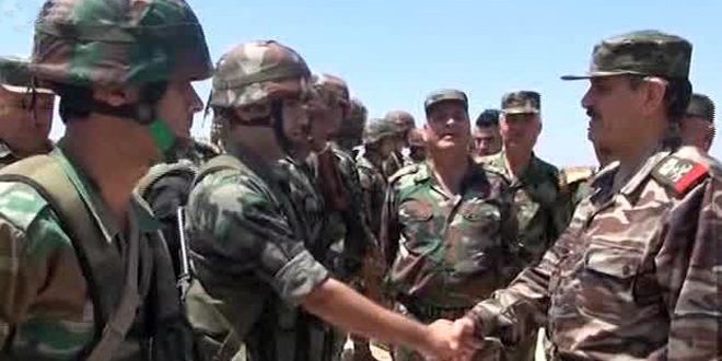 El subcomandante del ejército se encontró con los combatientes desplegados en el sitio, a quienes les transmitió la confianza y el orgullo del presidente Al-Assad por sus actos heroico y sacrificios.