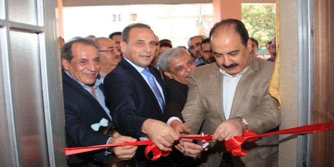 El secretario general adjunto del Partido Árabe Socialista de al-Baath, Hilal al-Hilal, acompañado por el ministro de Salud, Nizar Yazayi y el ministro de Administración Local, Hossein Makhlouf, inauguró un complejo sanitario para el Sindicato de Docentes en el barrio de al-Hamadaniya en Alepo.