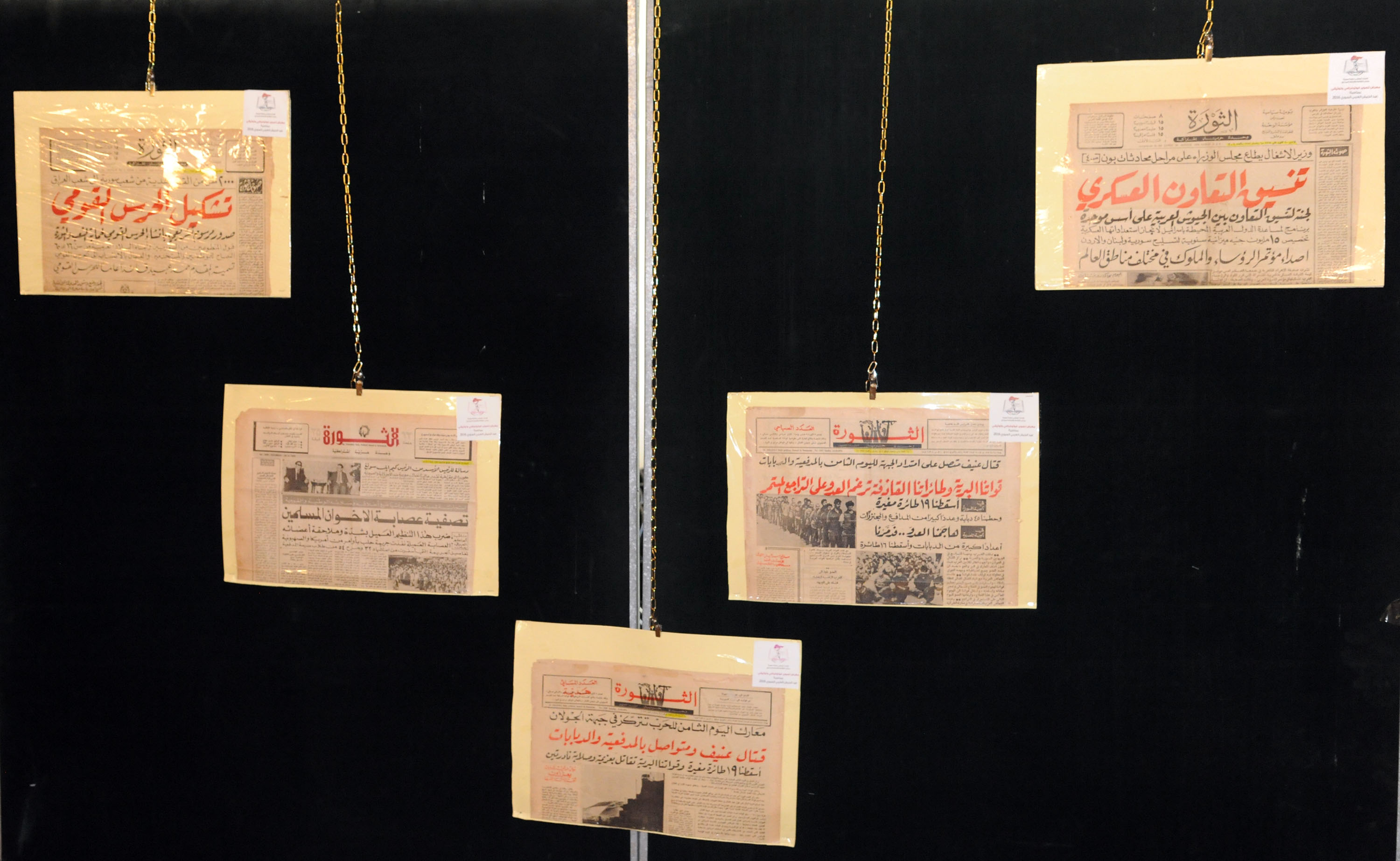 La exposición abarca 400 cuadros que las batallas del ejército y los festejos populares por los triunfos contra el terrorismo, además de fotografías de distintas etapas de la historia del establecimiento militar desde su fundación, así como primeras planas de periódicos locales que documentaron las guerras libradas por el ejército en defensa de Siria y la nación árabe.