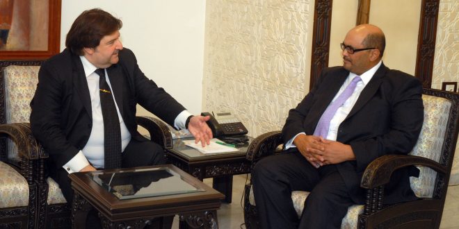 El ministro de Cultura, Ahmad al-Ahmad examinó este miércoles con el embajador de Sudáfrica en Damasco, Shaun Byneveldt, las vías de promover la cooperación bilateral en materia cultural.