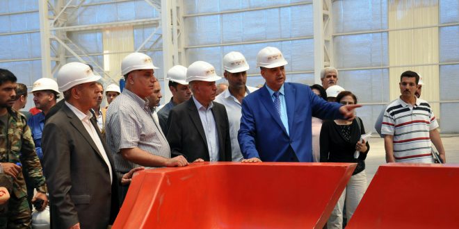 Acompañado por el gobernador de Homs, el ministro de Industria, Ahmad al-Hamu, realizó este miércoles una gira en la ciudad industrial de Hisyaa.