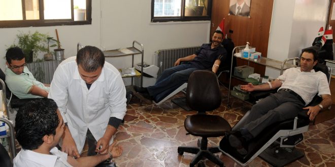 Los participantes afirmaron que la donación de sangre es un pequeño gesto en comparación con los sacrificios del ejército, agregando que la campaña expresa la firme posición de todos los espectros del pueblo sirio en apoyar al ejército y a las fuerzas armadas en su guerra contra el terrorismo.