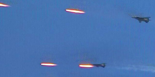 Provincias- SANA– La Fuerza Aérea Siria ha realizado en las últimas 24 horas 59 incursiones milites contra objetivos terroristas en los campo de las provincias de Idleb, Hama y Alepo, informa una fuente militar.