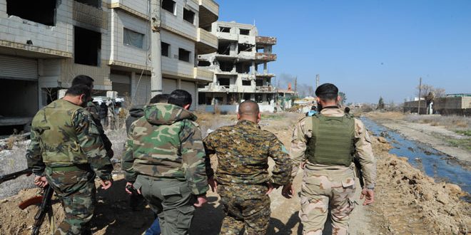Rif Dimashq, SANA– Una fuente militar le informó a SANA que las unidades del ejército y de las fuerzas armadas que operan en la dirección de Darayaa en las afueras de Damasco ampliaron su control en la zona y retomaron el control sobre nuevos 24 edificios, además de la eliminar a un número de terroristas y la destrucción de sus armas y pertrechos bélicos.