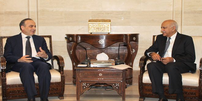 Damasco, SANA– El primer ministro de la República Árabe Siria Imad Khamis se ha reunido este sábado con el ministro de Estado para Asuntos Exteriores de India, Mubashir Javed Akbar, con el motivo impulsar los mecanismos el trabajo del Comité Conjunto sirio-indio para reactivar los acuerdos económicos antes firmados y profundizar la cooperación mutua.