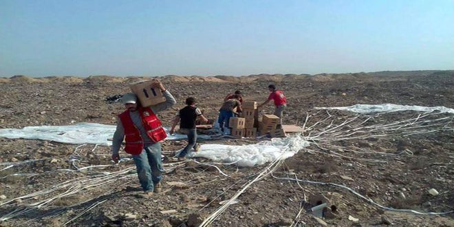 Los aviones rusos y sirios lanzaron en paracaídas ayer, un nuevo lote de ayudas alimentarias a los habitantes cercados en la ciudad de Dier Ezzor.