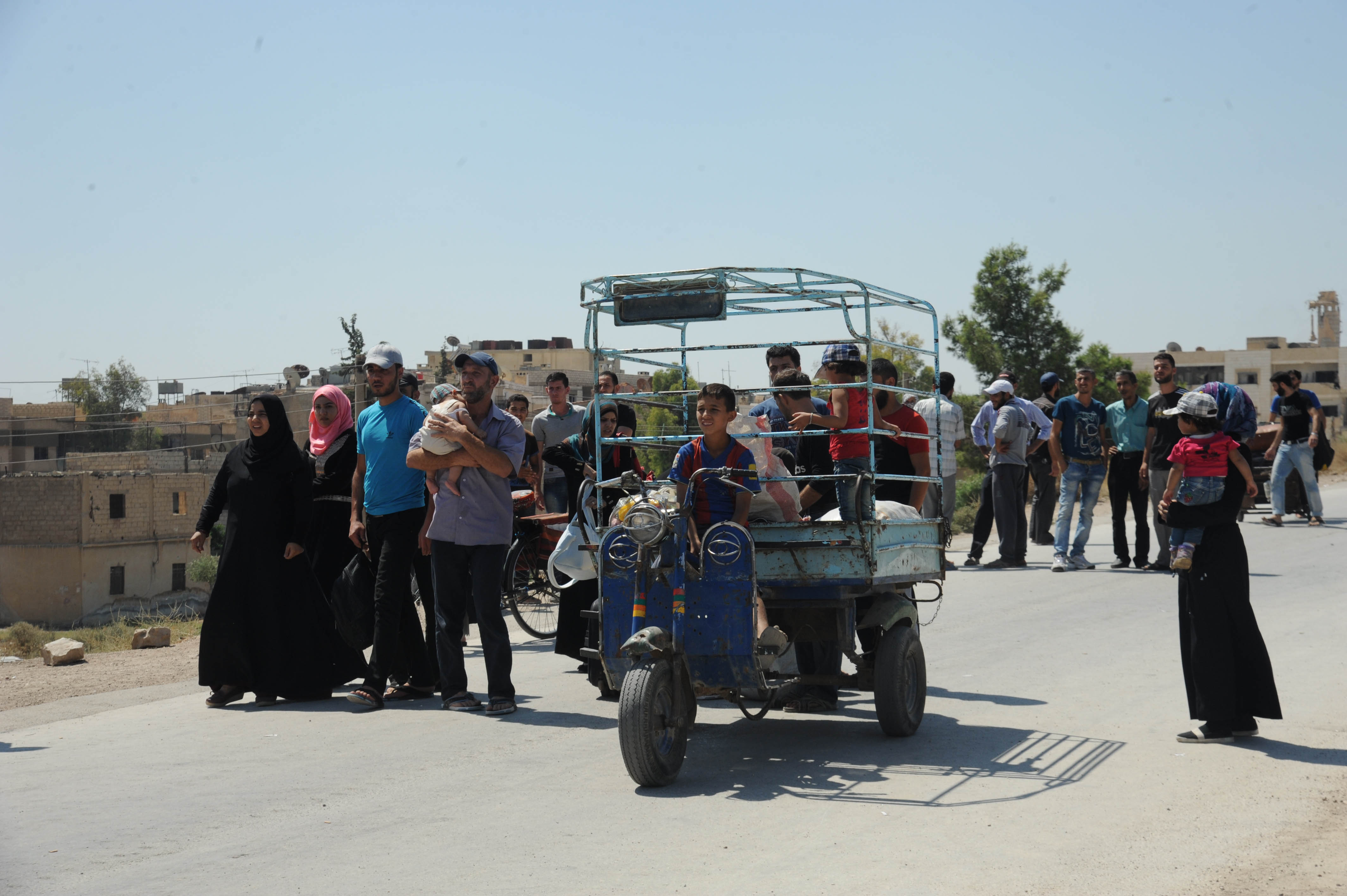 El viernes pasado 303 personas de Daraya fueron transportadas de Maadamiya al centro de acogida temporal en Heryelleh, asimismo el 26 y el 27 del pasado mes de agosto, centenares de civiles se salieron de la ciudad de Daraya al referido centro en el marco del acuerdo logrado para evacuar la ciudad de los armados y sus armas.