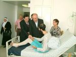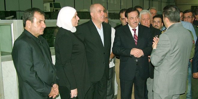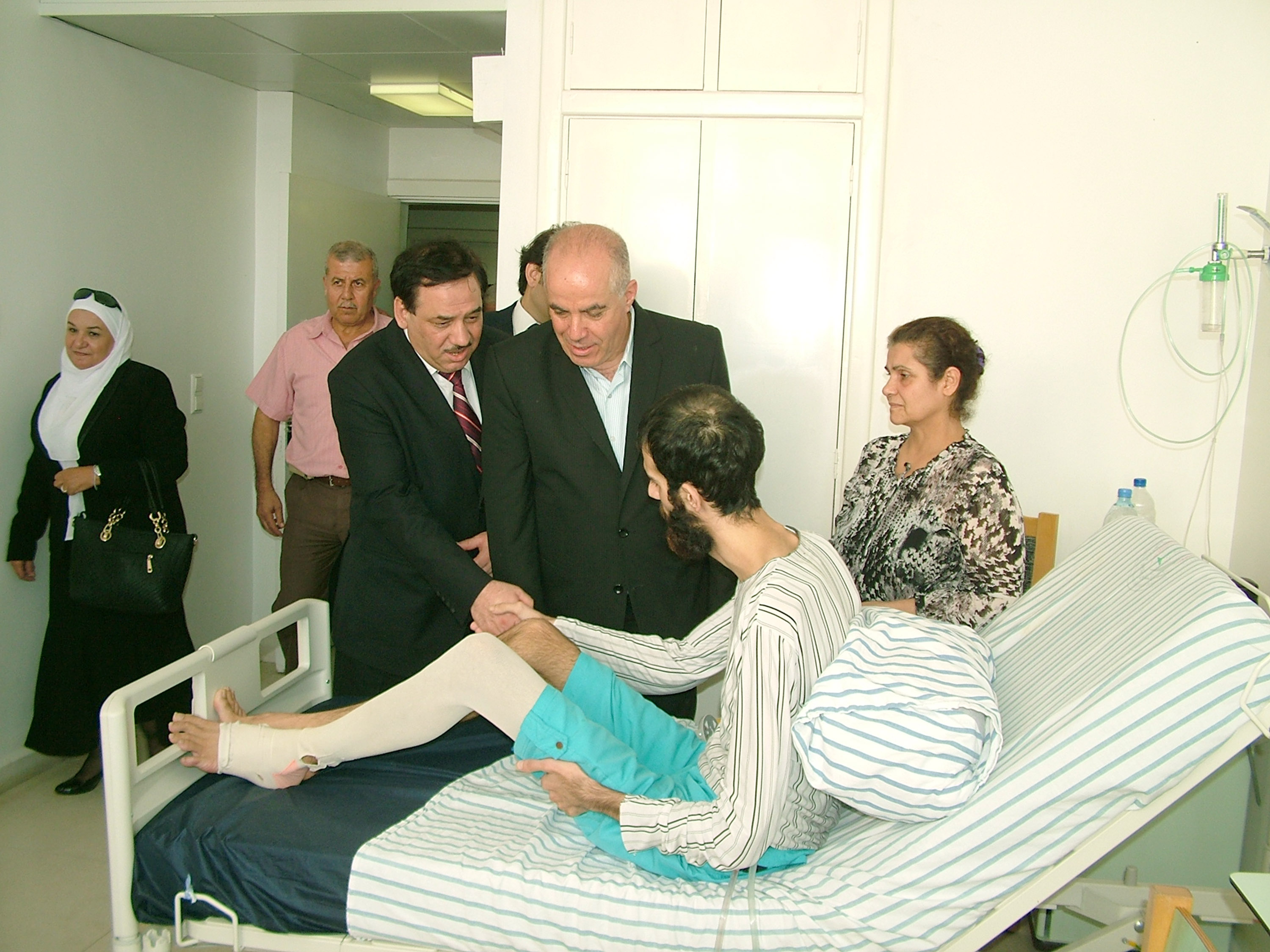 La delegación que contó con el Ministro de Comercio Interior y Protección del Consumidor, la Ministra para Asuntos Sociales y Trabajo, el Ministro de Hacienda, y el gobernador de Latakia, visitó a los 260 desplazados en el centro de acogida temporal en Harem, así como homenajearon a los heridos del ejército sirio en el Hospital Universitario de Tishreen.